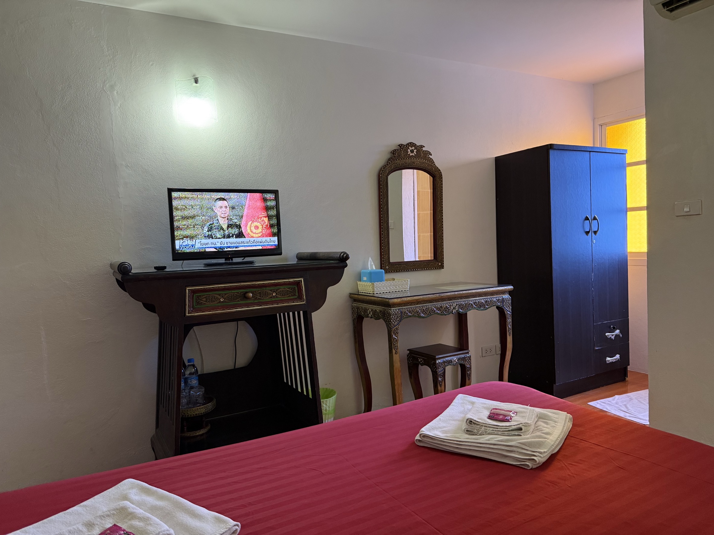 - Television - Air Condition - เครื่องทำน้ำอุ่น - เฟอร์นิเจอร์ไม้สัก** ช่วงเทศกาล เพิ่มห้องละ 100 บาท** เตียงเสริมเพิ่ม 200 บาท/คน*หมายเหตุ จองชำระเงินแล้วไม่สามารถยกเลิกหรือเลื่อนได้ทุกกรณี